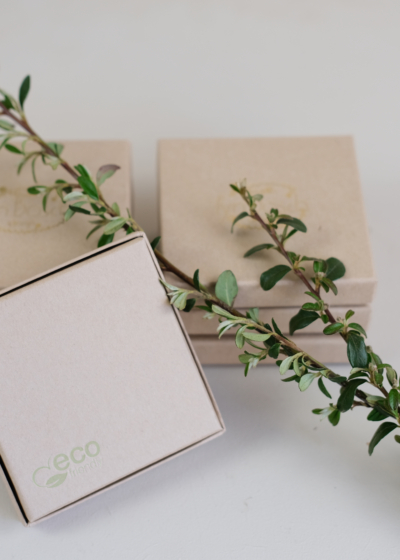 The floating flora glass pendant necklaces come in beautiful eco friendly boxes with the FynBosch logo and the info label on the inside.