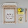 Each set comes in a beautiful hand printed FynBosch Design cotton bag containing a wooden frame, shuttle, comb, heddle bar, floral illustration, 4 cotton balls, and basic instructions.