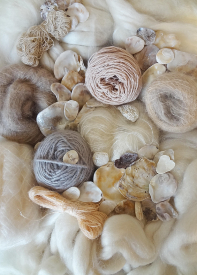 I use only natural fibres such as mohair, raw silk, linen and wool to best blend in with the natural atmosphere I try to recreate.
