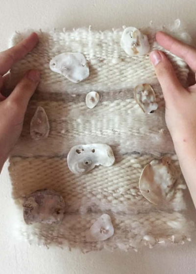 This beautifully hand woven wall decoration was inspired by the oceans shells I collected in Port Elizabeth, South Africa. All yarns used in this weave also come from Port Elizabeth and were made locally in South Africa.