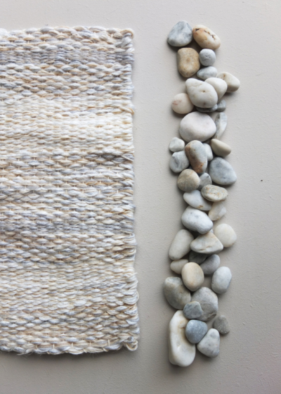 Intricate melange weave inspired and based on the colour pallets of pebbles found on beaches in Lesvos, Greece.